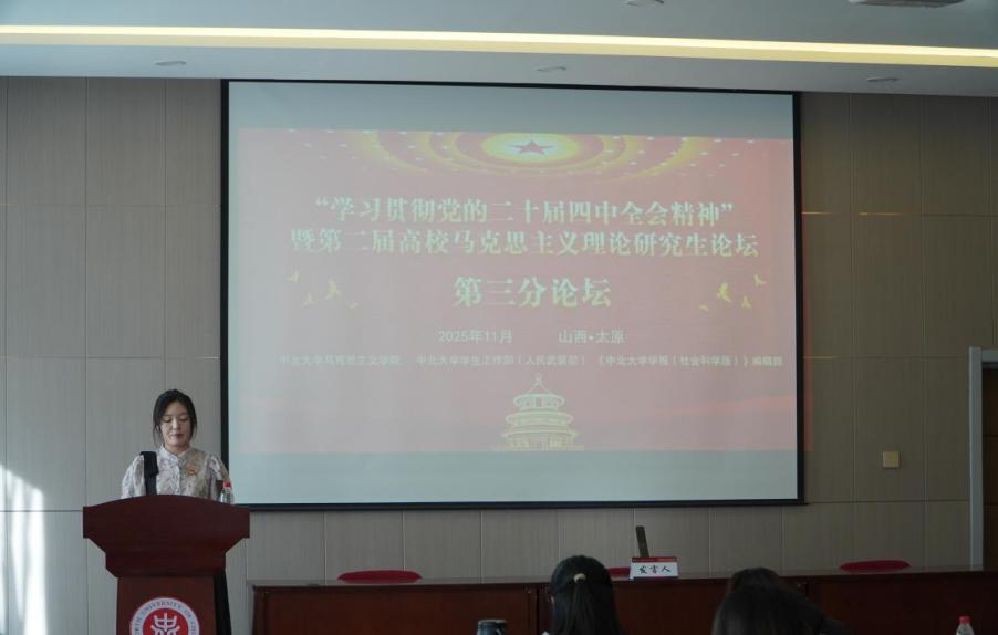 中北大学学生工作部(人民武装部)崔亚副部长在致辞中指出,举办本次论坛是落实党中央号召、推动全会精神走深走实的重要举措,也是促进马克思主义理论学科青年人才培养、加强高校间学术交流合作的有效载体。他鼓励与会学子聚焦主题、畅所欲言,在思想交流中展现新时代马克思主义理论专业研究生的学术素养与责任担当。