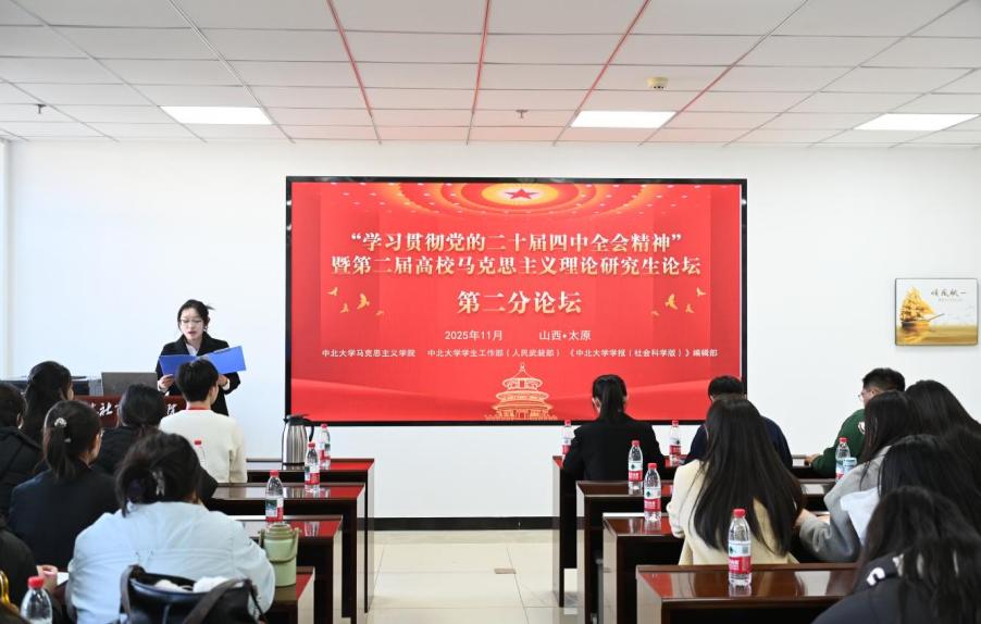 为深入学习贯彻习近平新时代中国特色社会主义思想和党的二十届四中全会精神,加强高校马克思主义理论专业研究生学术交流,2025年11月29日,由中北大学马克思主义学院、中北大学学生工作部(人民武装部)、《中北大学学报(社会科学版)》编辑部在中北大学科艺苑共同举办了“学习贯彻党的二十届四中全会精神”暨第二届高校马克思主义理论研究生论坛。本次论坛共收到来自北京大学、中国人民大学、复旦大学等一百余所高校的406篇投稿,经专家匿名评审,共评选出70余篇获奖论文,来自二十余所高校的论文作者及省内多所高校的马克思主义学院代表团参加了本次论坛。