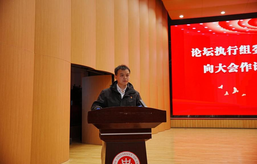 论坛执行组委会主席赵子豪同学代表组委会汇报论坛筹备情况,对各兄弟院校、评审专家及投稿作者的支持与付出表示感谢,并寄语与会代表充分利用平台优势,为学科繁荣贡献智慧力量。随后,李庆乐副书记宣读获奖论文名单并向获奖同学表示祝贺。