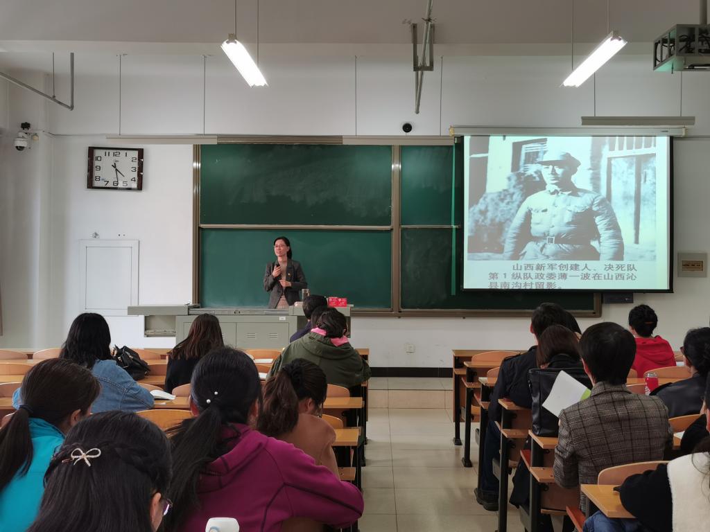此次宣讲会由马克思主义学院白雪枫老师主讲。本次宣讲以《铭记山西党史 传承红色基因》为题,以“一路光辉历程”和“两种革命精神”为主线,通过大量的图片资料,生动再现了山西党史波澜壮阔的百年光辉历程,全面诠释了山西革命所培育的伟大太行精神和吕梁精神。