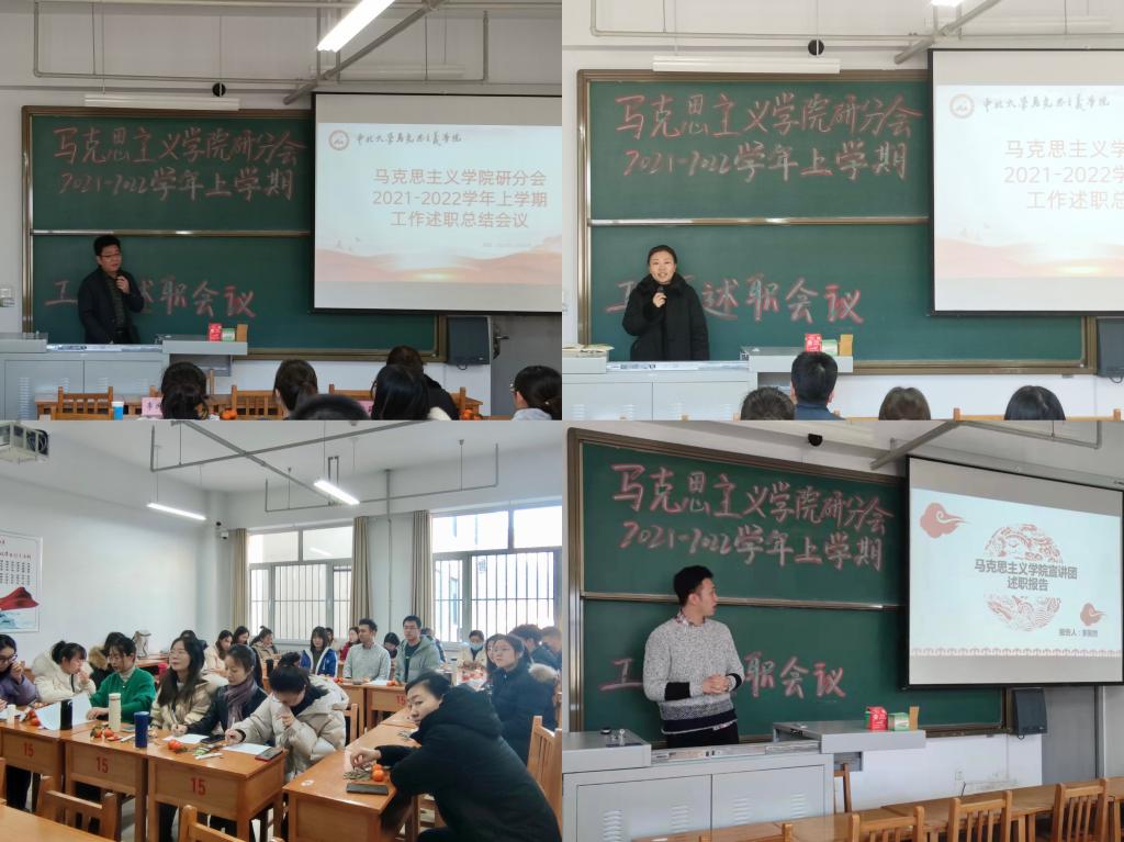 2021年12月30日上午,马克思主义学院研分会在15号楼409教室召开本学期工作述职总结会议。马克思主义学院党委副书记李庆乐、研究生辅导员刘莉莉老师、学院研分会主席团成员以及各部门全体成员参加了此次会议。