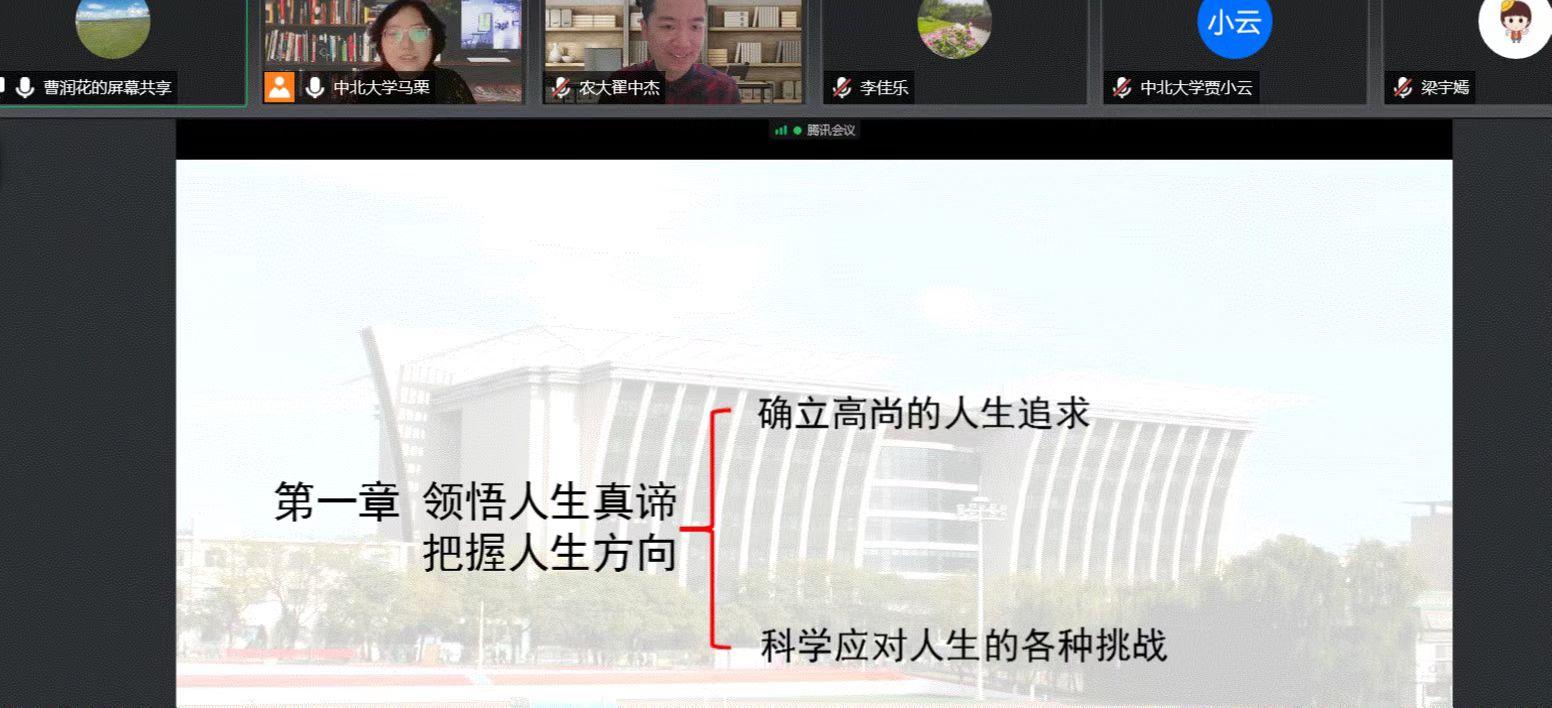 本是四月芳菲尽的美好时节,突如其来的疫情给城市按下停止键,随之而来的是线上线下课程的衔接——“怎样上好一堂线上课”、“如何做好有温度、有深度思政课堂”……2022年4月22日上午8:30,中北大学马克思主义学院思想道德与法治基础教学部携手山西农业大学思想道德与法治教研室相会于云端,共赴一场春天的约会。
