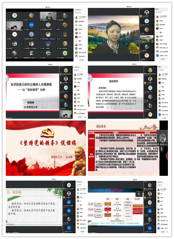 为了更好地推动大中小学思政课一体化建设,教育引导各学段学生不断增进对中国共产党和中国特色社会主义的政治认同、思想认同、理论认同、情感认同,2022年10月18日,马克思主义学院与山西工学院和朔州市教育局共同举办了“坚持党的领导”为主题的集体备课活动。本次会议特别邀请到了北京师范大学马克思主义学院教授熊晓琳主讲,马克思主义学院院长赵笑蕾、副院长郭玲霞主持,山西工学院思政课教师代表和朔州市各学段思政课教师代表参与此次活动。
