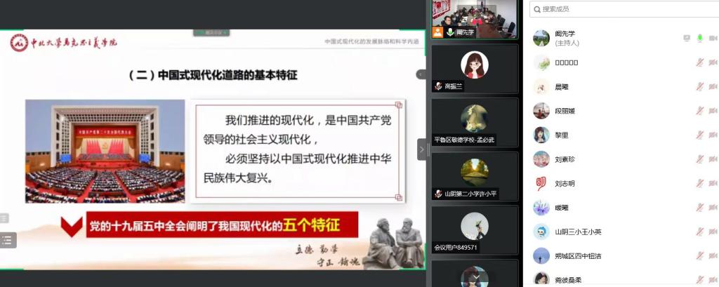 11月15日,由中北大学马克思主义学院联合朔州市教育系统举办的“大中小学思政课一体化”集体备课活动在学院会议室线上线下同步进行,本次活动的主题是“中国式现代化的基本特征和内在要求”。参加本次活动的有特邀专家中国人民大学马克思主义学院侯衍社教授,中北大学马克思主义学院副院长郭玲霞和“习近平新时代中国特色社会主义思想概论”课的代课教师以及山西工学院、朔州市中小学思政课教师代表。