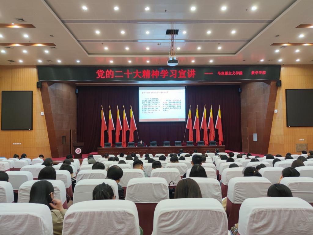 为贯彻落实党的二十大精神,进一步增强同学们爱国爱党思想、坚定中国特色社会主义信念,强化认识新时代青年所面临的时代机遇和担当的历史责任,马克思主义学院研究生党支部和数学学院研究生党支部成立党的二十大精神学习互助组,互助组在学院领导的大力支持下,4月11日下午,邀请了上海交通大学马克思主义学院杜玉华教授来校做报告,并以此作为互助组的启动仪式。