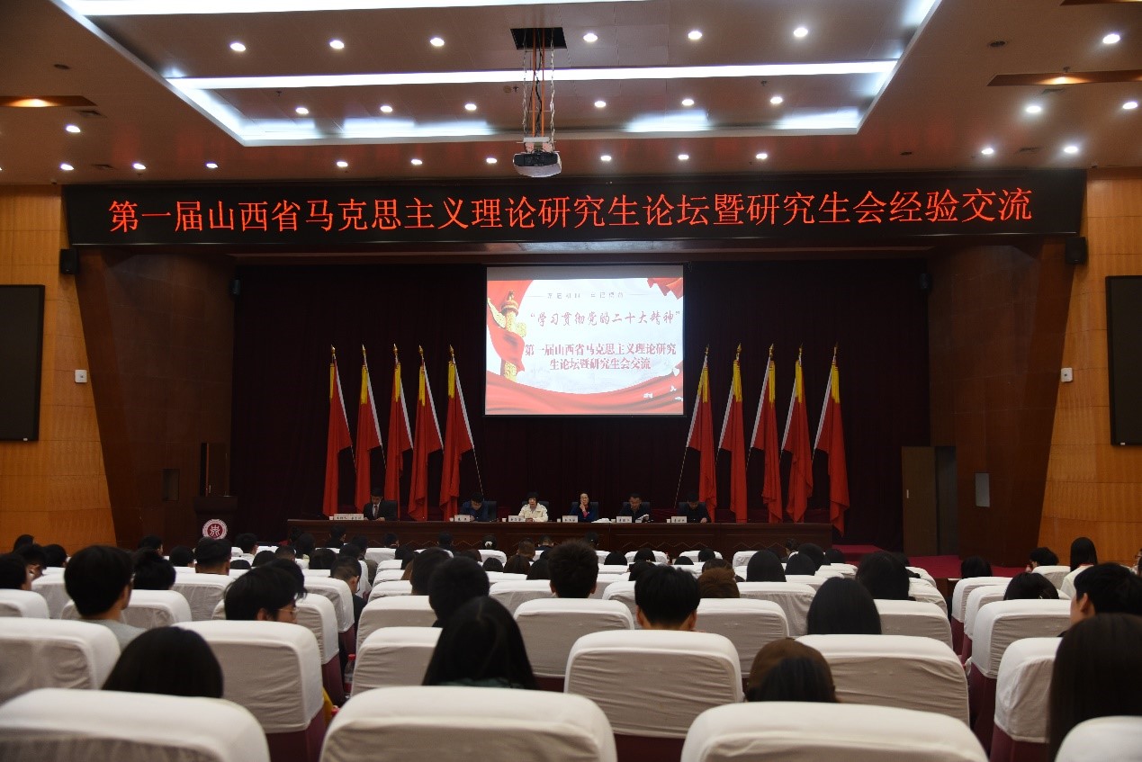 2023年4月12日,由中北大学党委学生工作部(研究生工作部、武装部)和马克思主义学院主办,中北大学研究生会、中北大学马克思主义学院研究生会承办,《中北大学学报》编辑部协办的“‘学习贯彻党的二十大精神’第一届山西省马克思主义理论研究生论坛暨研究生会经验交流”在中北大学成功举行。来自中国人民大学、中山大学、中央财经大学、西北政法大学等知名高校论文投稿作者;来自山西大学、太原理工大学、山西师范大学、山西财经大学、山西农业大学、太原科技大学的马克思主义学院研究生及高校研究生会代表,共200余人参加论坛。上海交通大学马克思主义学院杜玉华教授、中北大学党委学生工作部(研究生工作部、武装部)部长李俊华、中北大学马克思主义学院院长赵笑蕾教授、中北大学党委学生工作部(研究生工作部、武装部) 副部长崔亚、中北大学马克思主义学院党委副书记李庆乐出席开幕式。开幕式由中北大学研究生会执行主席、马克思主义学院研究生会主席李东泽同学主持。