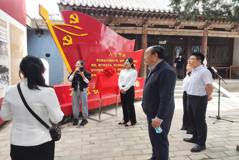 为深入学习贯彻党的二十大精神,5月17日,中北大学马克思主义学院岚县“爱国主义教育”基地揭牌仪式在岚县岚城镇120师司令部旧址举行。岚县县委书记张新春,岚县县委常委、岚城镇党委书记郭宏鹏,县委常委、政法委书记雷永冬与我院党委书记段义权、党委副书记李庆乐共同出席揭牌仪式,岚县县委常委、宣传部长郭勇勇主持揭牌仪式。学院部分师生党员代表参加此次活动。