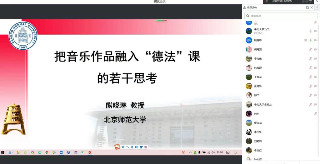 5月19日,值此中北大学建校82周年之际,作为校庆系列学术交流活动之一,马克思主义学院邀请北京师范大学马克思主义学院熊晓琳教授为“思想道德与法治”基础教学部做了一场题为“把音乐作品融入‘德法’课的若干思考”的学术讲座。