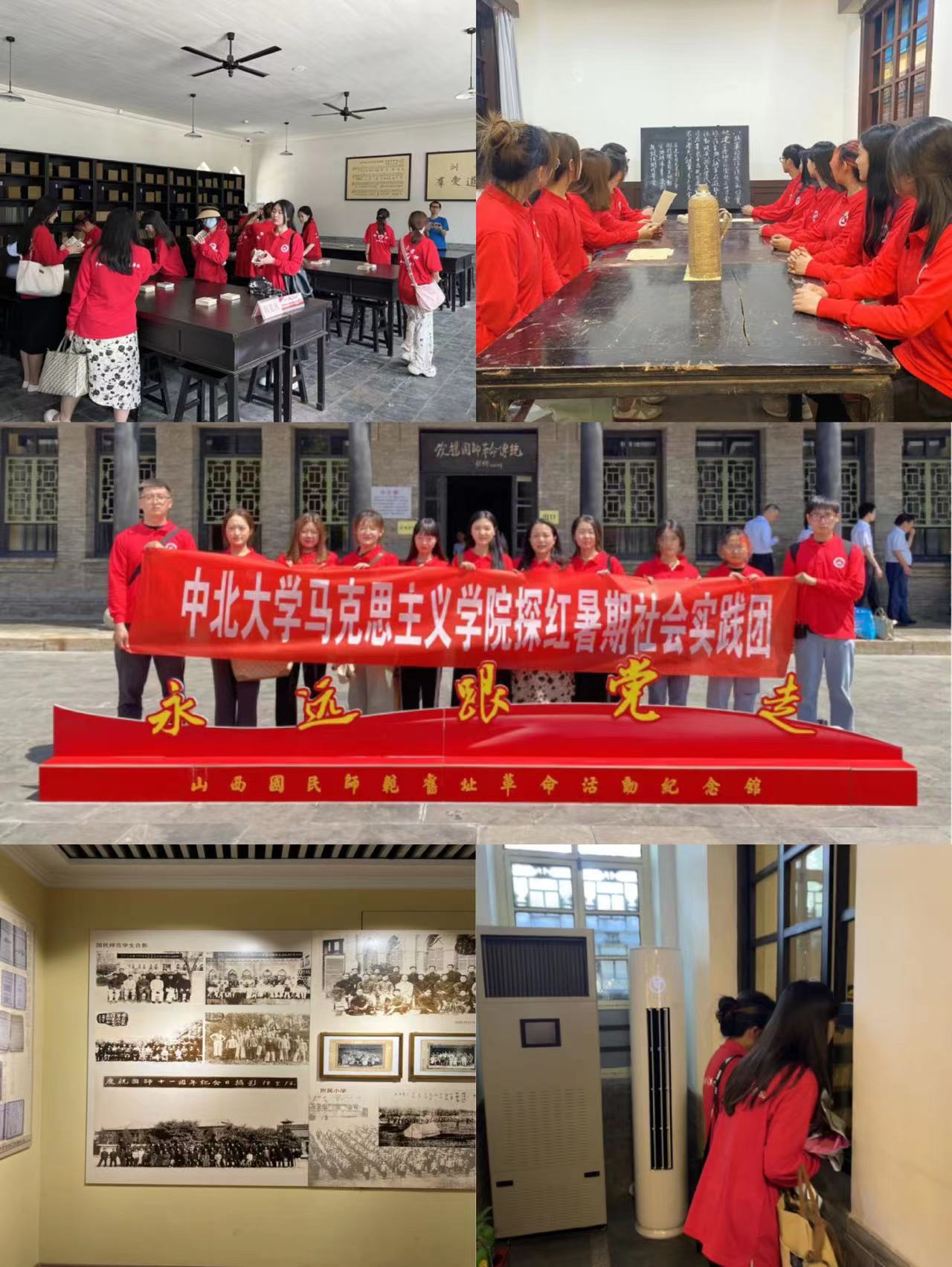 在中国共产党成立102周年之际,为进一步深入学习贯彻习近平新时代中国特色社会主义思想,深刻把握红色文化,了解革命历史,感悟爱国主义精神,做好新时代红色基因的传承者、弘扬者和践行者,7月1日至7月10日,中北大学马克思主义学院探红暑期社会实践团在太原地区进行了为期十天的红色革命文化实践活动。团队成员深入八路军驻晋办事处旧址、国民师范旧址、中共太原支部旧址、革命烈士纪念塔、太原解放纪念馆,开展广泛的调研,在感悟红色历史、缅怀先辈中勇担时代使命,赓续红色精神。