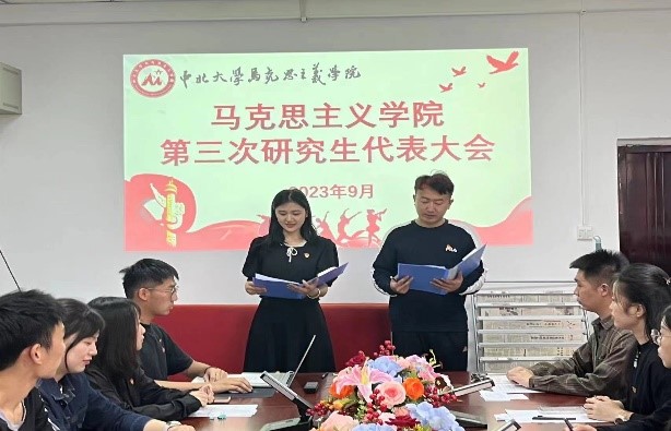 2023年9月22日下午,马克思主义学院第三次研究生代表大会在4号楼211室成功召开。出席本次代表大会的有:马克思主义学院党委书记段义权、马克思主义学院党委副书记李庆乐、团学办负责人刘莉莉老师以及研究生代表。