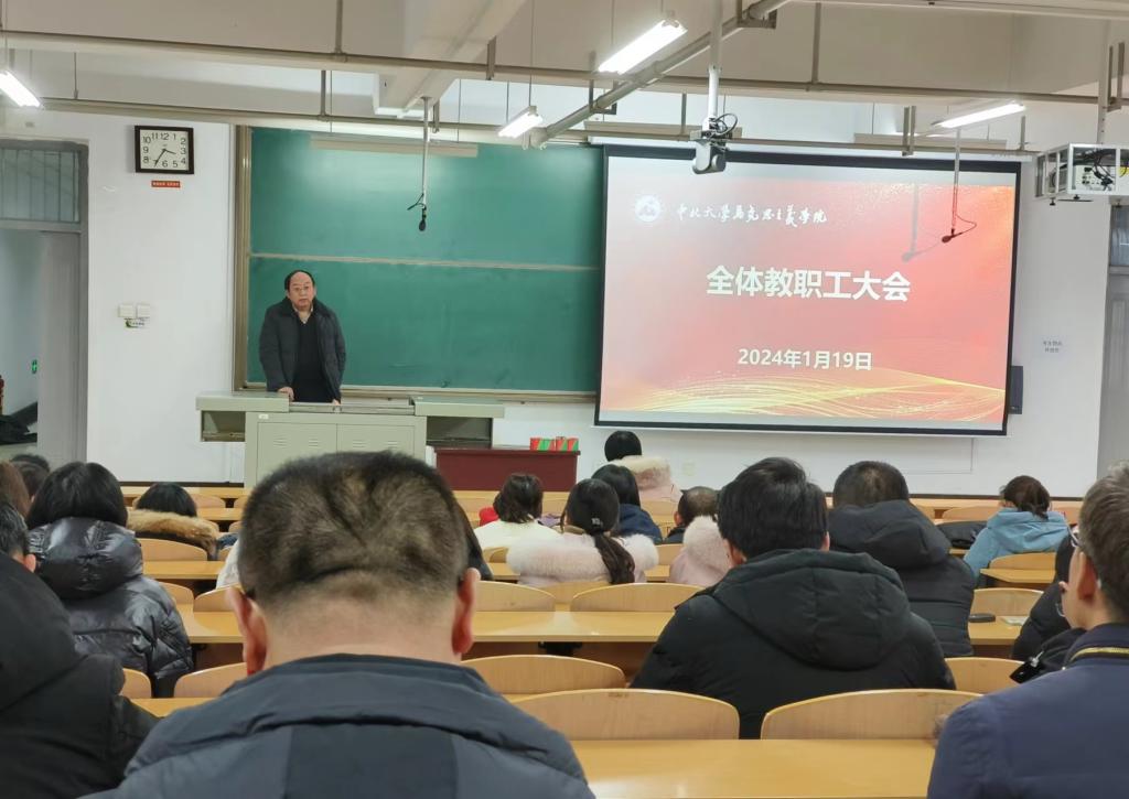 1月19日下午,马克思主义学院教职工大会在15102H举行。学院全体教职员工参会,会议由学院党委书记段义权主持。