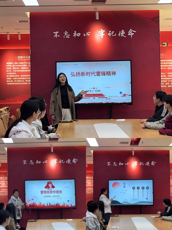 宣讲团成员杨瑞婷作了题为“弘扬新时代雷锋精神”的主题宣讲,从雷锋的介绍、雷锋精神永不过时、新时代的“活雷锋”和青年一代弘扬雷锋精神四个方面开展,告诉我们无论时代如何变迁,雷锋精神代代传承且永不过时,面向未来,我们青年一代要将雷锋精神融入我们的日常点滴中,让雷锋精神继续绽放光芒。