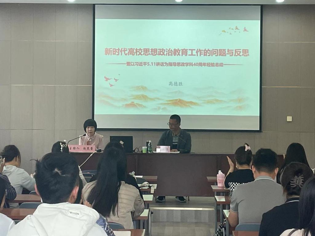 为深入学习贯彻习近平总书记新时代学校思政课建设重要指示精神,5月16日,中北大学马克思主义学院邀请黑龙江省级B类人才、吉林省拔尖人才、国家社科重大项目首席专家、吉林大学马克思主义学院博士生导师高德胜教授,于科艺苑侧厅学术报告厅举办了以“新时代高校思想政治教育工作的经验与思考——暨以习近平重要讲话为指导思政学科40周年的经验总结与发展探讨”为主题的专题讲座。本次学术会议由中北大学马克思主义学院院长赵笑蕾教授主持,中北大学思想政治理论课教师、组织员、辅导员、部分学生参加讲座。