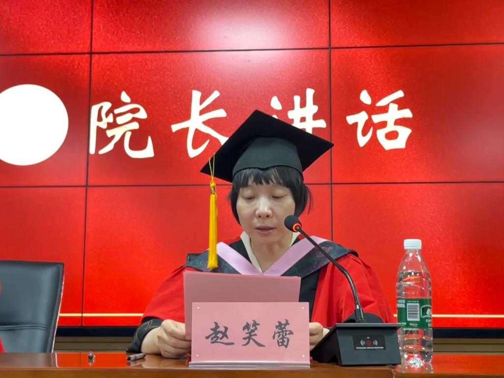 院长赵笑蕾致辞。她首先向圆满完成学业的同学表示诚挚的祝贺,讲话中回顾了自学院成立以来师生共同奋斗取得的优异成绩。在惜别之际,向毕业生提出以下三点期望:立心明志,时刻铭记不负时代的使命担当;立身强学,勇于锻造不负时代的意志本领;立行致远,努力做出不负时代的业绩贡献。期待大家在立心立身立行中开启新征程,在明志强学致远中扬帆起航!