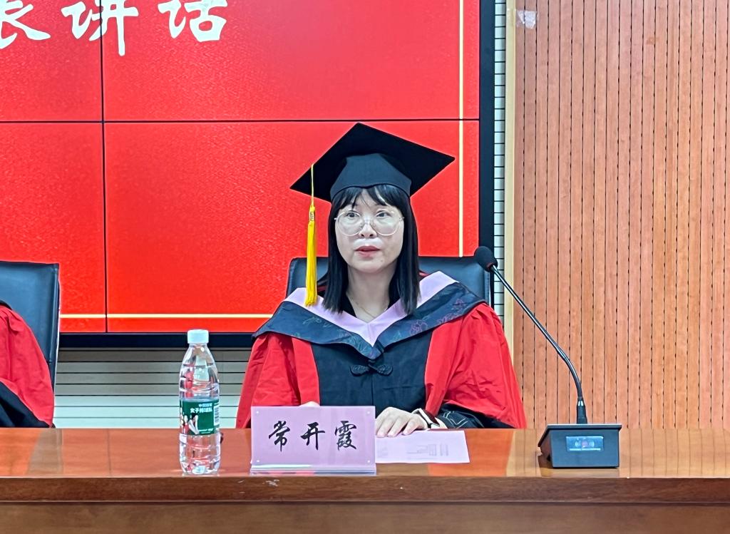 常开霞老师作为导师代表致辞,向光荣毕业的同学表达最热烈的祝贺。作为中北马院思政专业毕业的研究生,希望同学们继续保持鲜红底色,坚定理想信念,鼓励大家要以殷殷爱国之情,拳拳赤子之心,心怀“国之大者”,勇挑时代重担,为中华民族的伟大复兴贡献青春力量。
