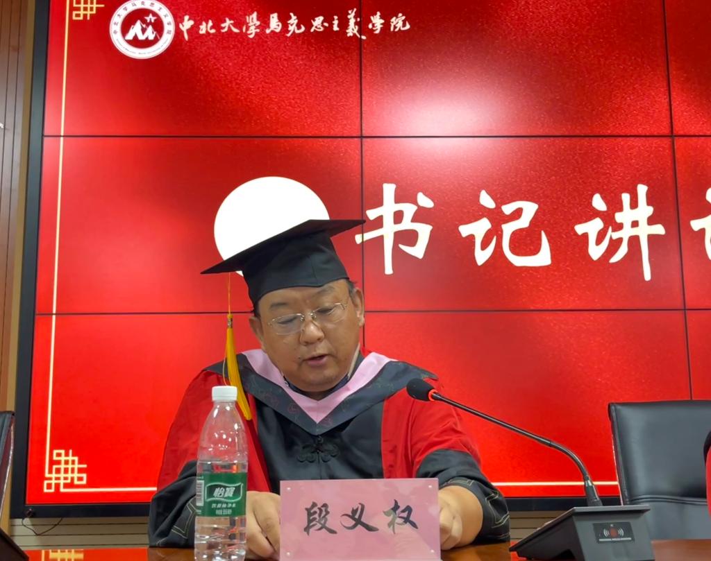 院党委书记段义权致辞。他围绕“青年人要‘自找苦吃’”寄语全体毕业生,鼓励大家要吃学习奋斗之苦,立志读尽人间书;吃追求卓越之苦,致广大而尽精微;吃忍耐克制之苦,咬定青山不放松。希望同学们在人生旅途中,保持积极乐观的心态,在脚踏实地、修身养性中,实现“苦尽甘来”。