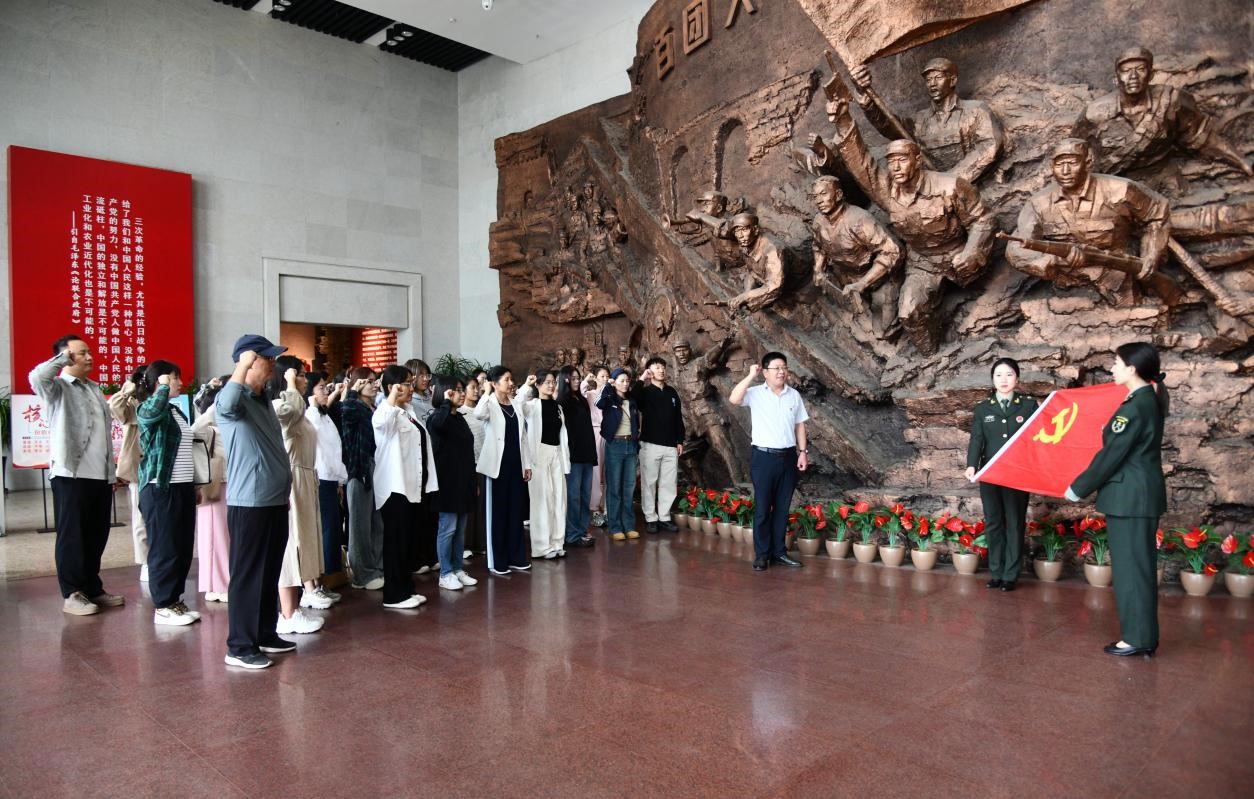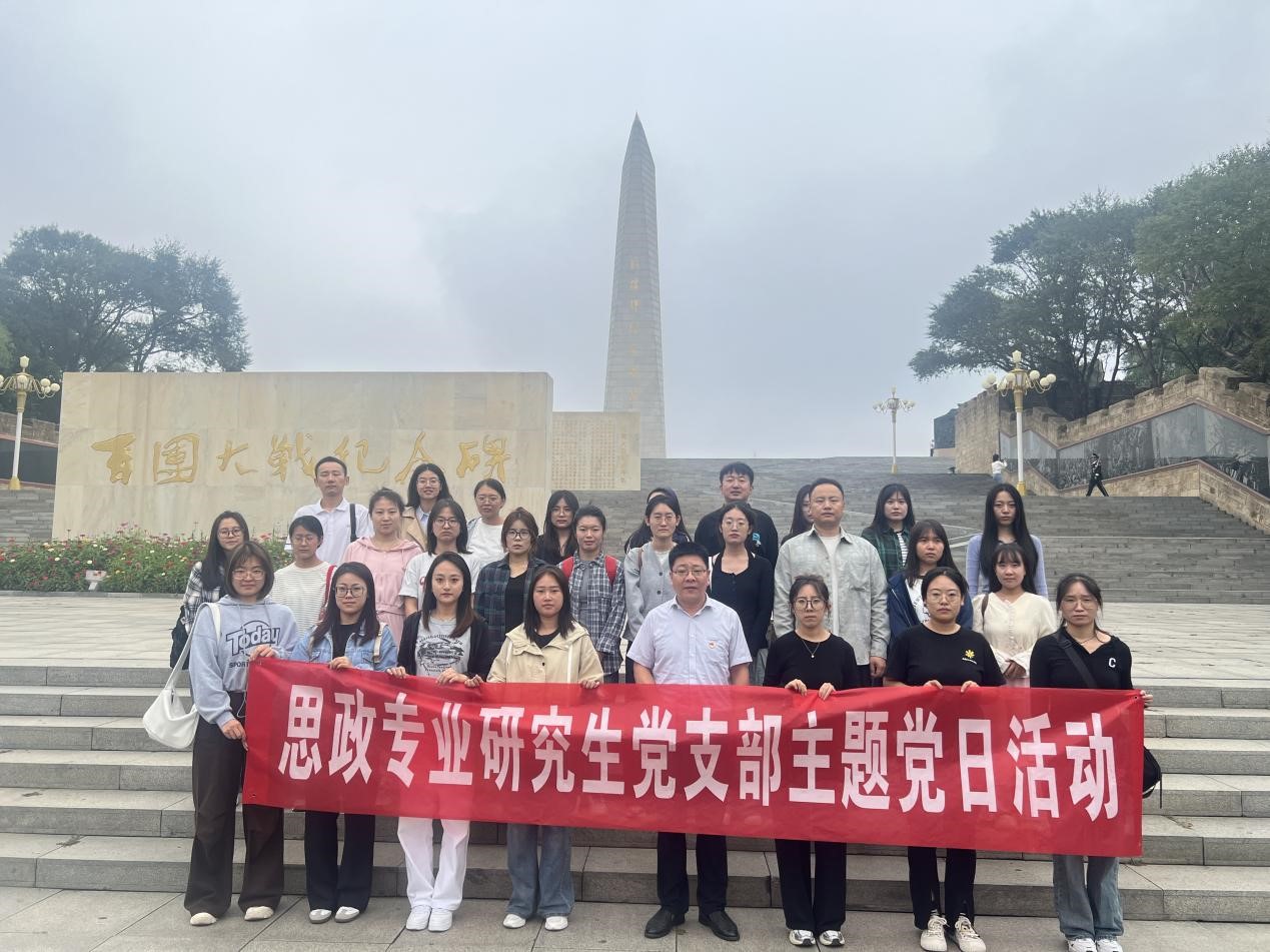 在九一八事变爆发93周年之际,为深切缅怀抗日战争的英雄先烈,开展新时代爱国主义实践教育,马克思主义学院思政专业研究生党支部赴阳泉市狮脑山百团大战纪念馆开展主题党日活动并举行“研究生实践基地”揭牌仪式。阳泉市党史研究室副主任张卫萍、纪念馆馆长陆茜及我院党委副书记李庆乐、副院长郭玲霞共同出席,并为“研究生实践基地”揭牌,思政专业研究生党支部三十余名党员参加活动。