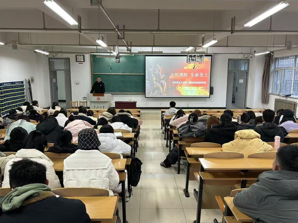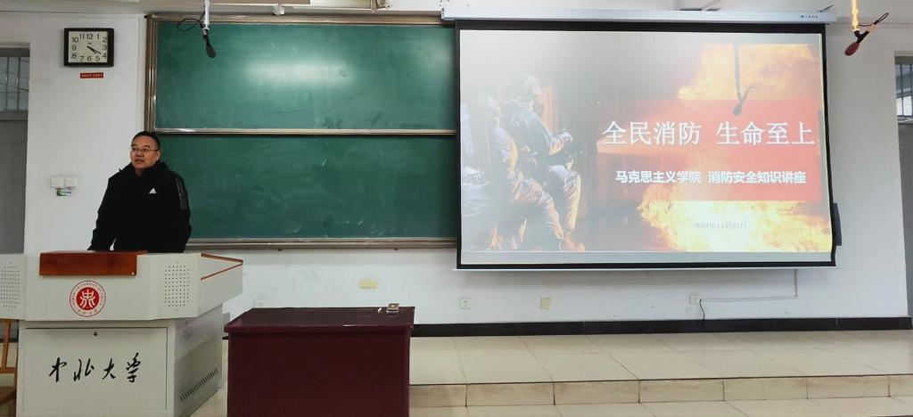 为进一步强化消防安全宣传教育,提升我院师生消防安全素质,切实做好冬季安全工作。11月27日,马克思主义学院在15102H教室举办以“全民消防,生命至上”为主题的消防安全知识讲座。本次讲座由中北大学保卫处的向远峰科长主讲,我院全体师生参加。