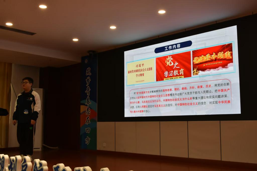 赛场上,李思伟将理论宣讲员作为自己的求职目标,从职业目标分析、岗位胜任力、发展潜力等多方面进行详细的阐述,充分地融合实际,立足学科专业,科学设定目标,突出自身优势,展现自我风采。