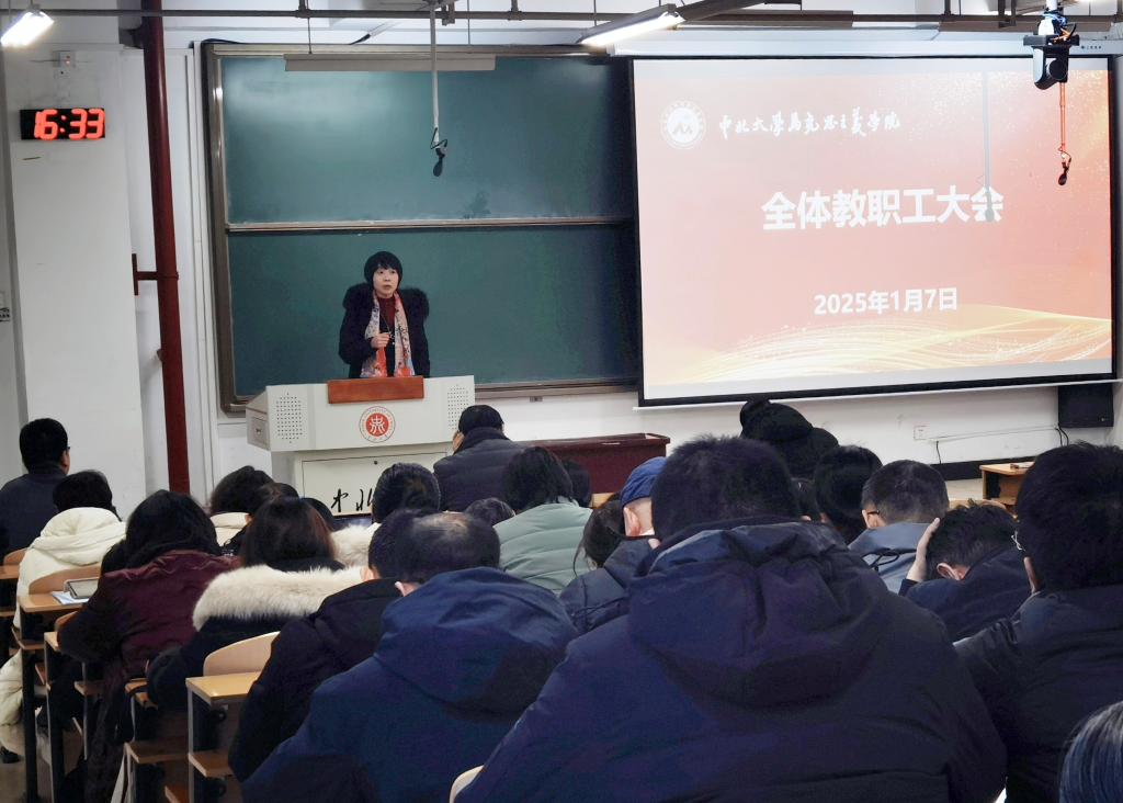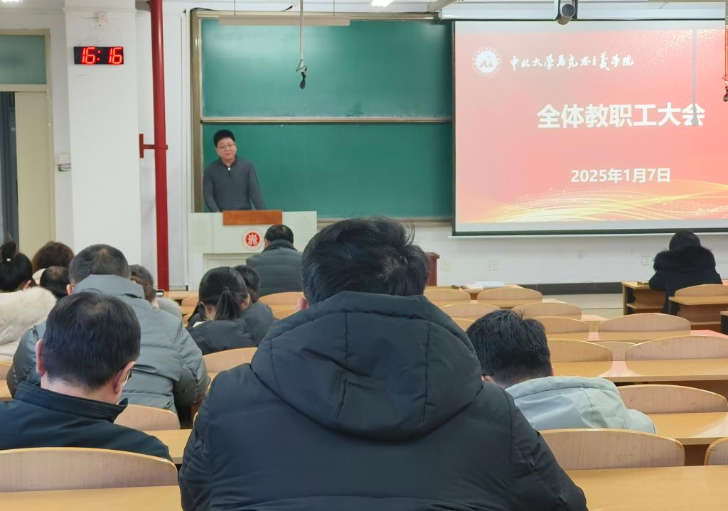 1月7日下午,马克思主义学院2025年第一次教职工大会在15106H举行。学院班子领导和全体教职员工参会,会议由学院党委副书记李庆乐主持。