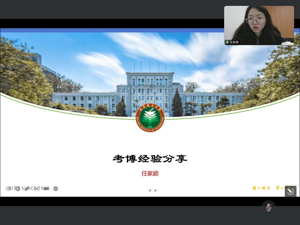 为助力研究生明晰学术发展路径,提升学术竞争力,系统掌握升学策略。3月7日,我院团学办邀请北京理工大学在读博士研究生任家颖进行考博经验分享,我院研一、研二同学参加。