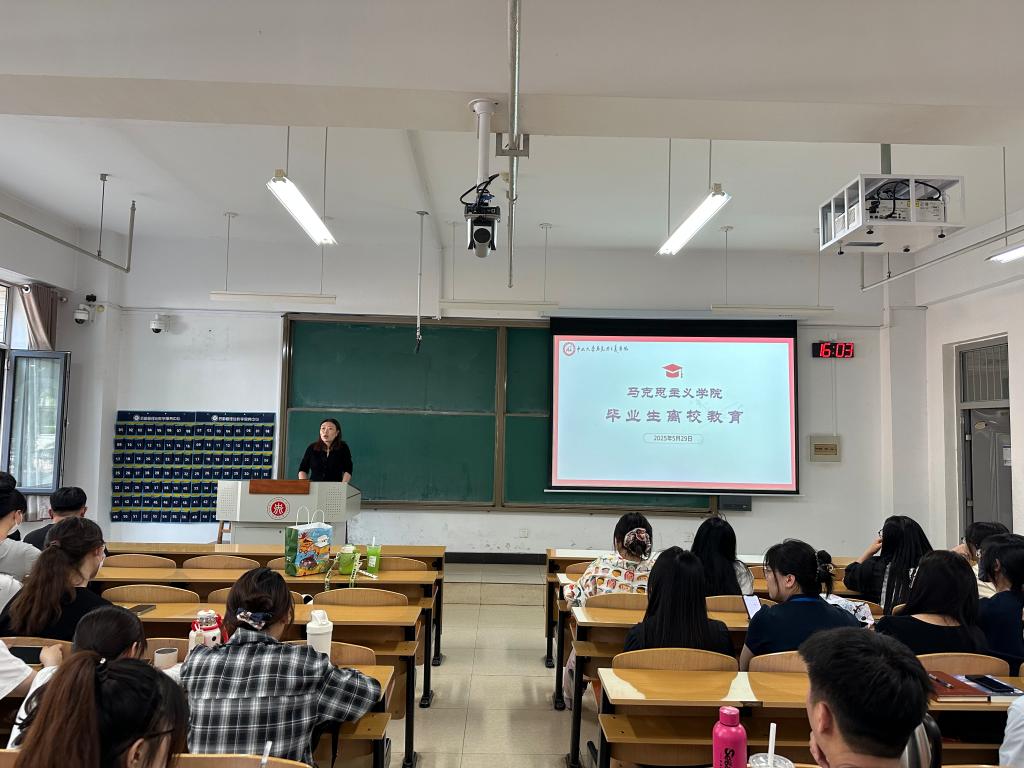 为增强毕业生安全意识,保障学院毕业季工作安全有序,5月29日,马克思主义学院在15204H教室召开毕业生离校安全教育主题班会,此次班会由毕业生班主任刘莉莉主持,全体毕业生参会。