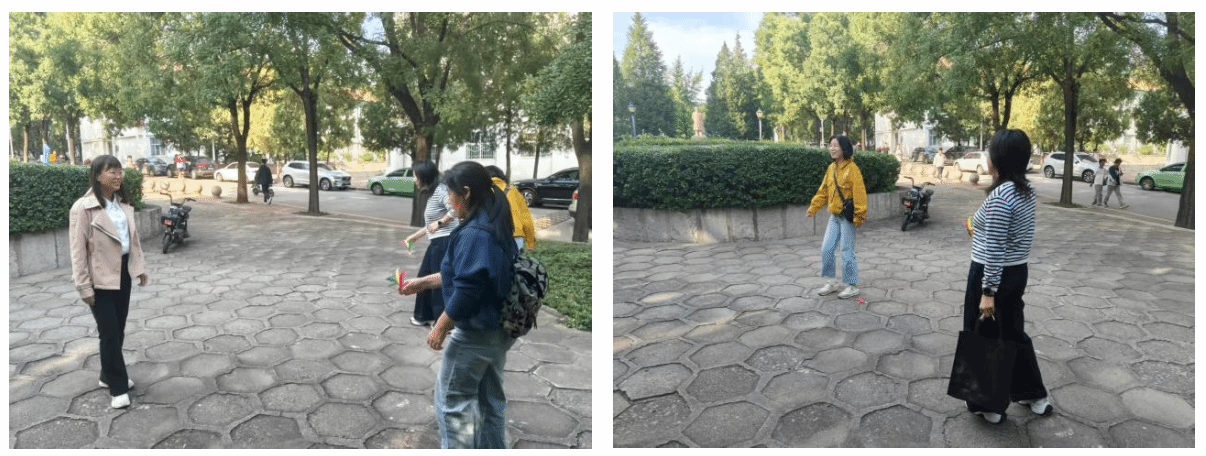 秋日午后,阳光和煦。老师们暂时放下繁忙的工作,投入到轻松愉快的运动中。跳绳场地,长绳翻飞,老师们配合默契,有的身姿矫健,动作连贯,有的略显生疏却乐在其中。踢毽子环节,彩毽飞舞,老师们或熟练地运用脚内侧、膝盖、脚尖等部位稳稳接毽,或趣味性地尝试高难度动作,大家各显其能,欢声笑语不断。整个活动过程充满了轻松愉快、健康向上的氛围。
