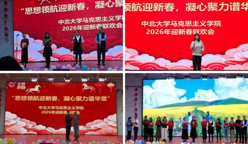 2026年1月9日,中北大学马克思主义学院“思想领航迎新春 凝心聚力谱华章”迎新春联欢会热烈举行。学院全体成员欢聚一堂,在欢声笑语中共迎新春。