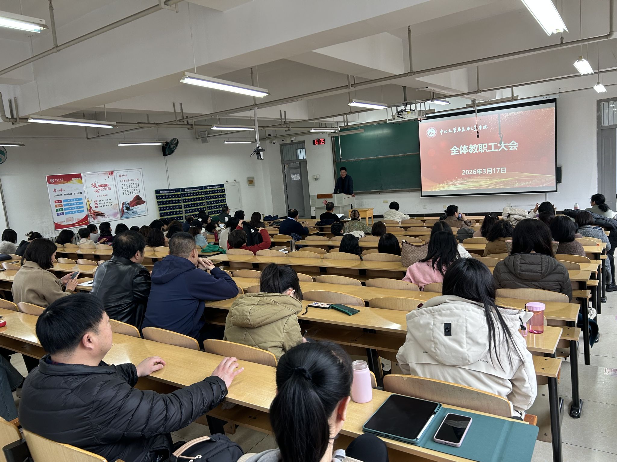 3月17日下午,马克思主义学院在15202H教室召开2026年春季学期全体教职工大会。学院领导班子成员及全体教职工参加会议,会议由学院党委副书记李庆乐主持。