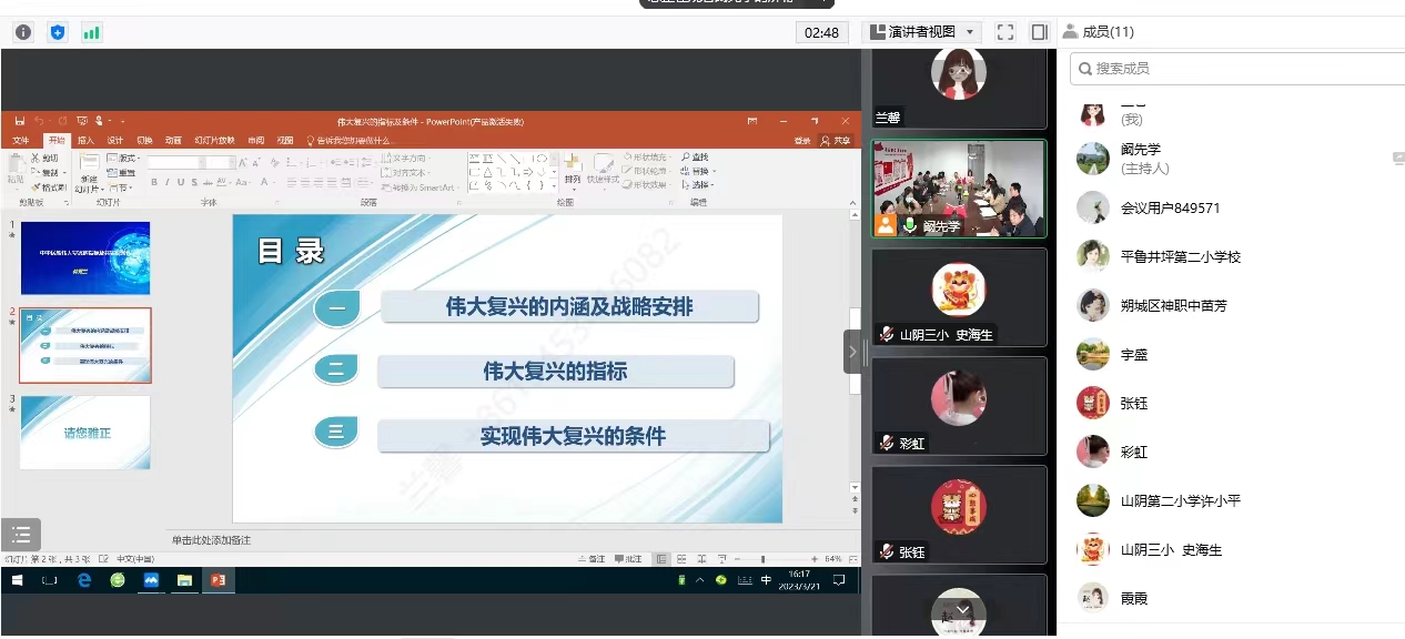 2023年3月21日下午四点,中北大学马克思主义学院与朔州市教育系统在在学院701会议室线上线下再次举办山西省“大中小学思政课一体化”集体备课会,本次会议主题是“中华民族伟大复兴的指标体系及其实现条件”。参加人员为中北大学“毛泽东思想和中国特色社会主义理论体系概论”基础教学部所有教师和朔州市中小学思政课教师代表。
