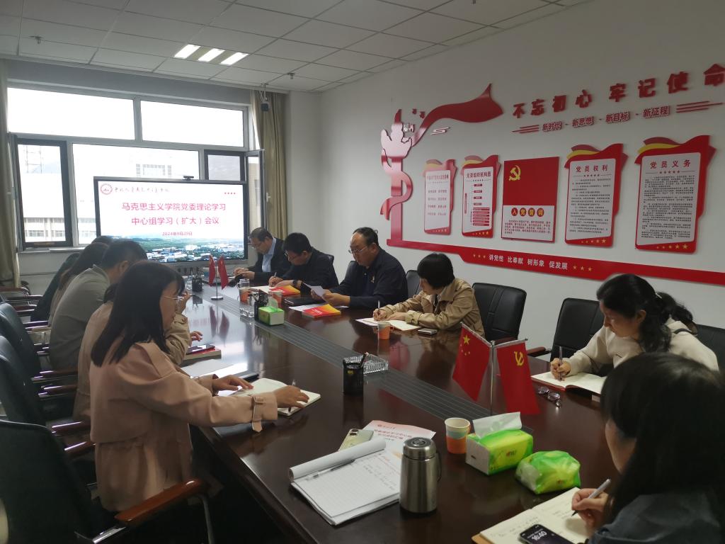 9月29日下午,学院党委召开理论学习中心组(扩大)学习会议。会议认真学习了党的二十届三中全会精神、习近平在全国教育大会上的讲话精神、习近平关于党纪学习教育要坚持融入日常抓在经常的指示精神、习近平在纪念邓小平同志诞辰120周年座谈会上的讲话等内容。学院党委书记段义权主持会议并领学,学院党委委员、班子成员、各科室负责人、各党支部书记参加。