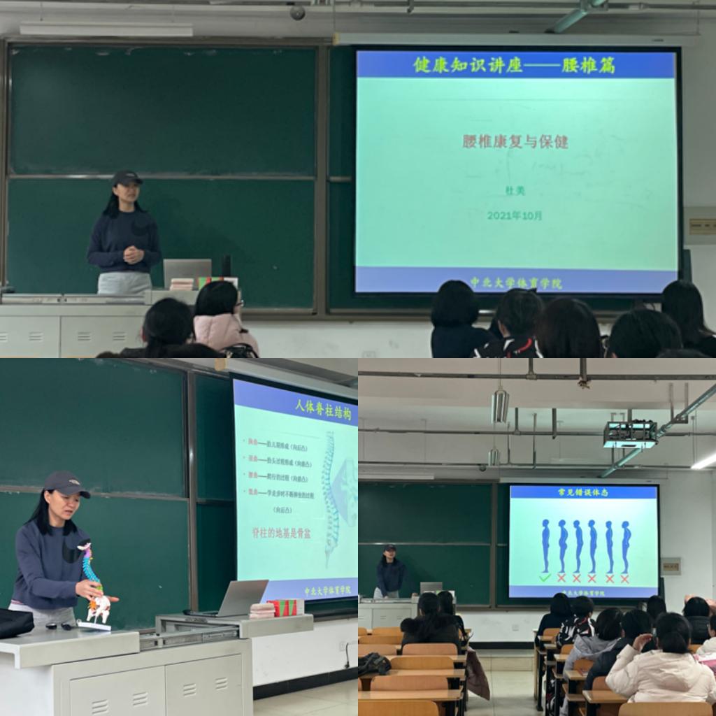 为倡导健康的工作生活习惯,关心爱护教职工身心健康,12月7日下午,马克思主义学院工会在15201H举办了一场健康知识讲座,本次讲座的主讲人是中北大学体育学院的杜美老师,讲座的主题是腰椎康复与保健。