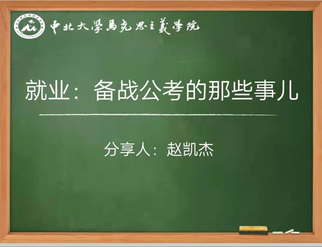 12月15日,马克思主义学院以线上会议的形式,举办了以“我的就业之路——备战公考的那些事儿”为主题的明德讲坛。此为我院研途云端畅谈,毕业校友经验交流系列讲座之一,主讲人为马克思主义学院优秀毕业生赵凯杰,我院全体研究生参加了此次讲坛。