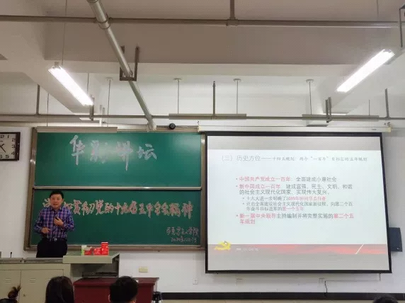 2020年12月17日,马克思主义学院20201801期华彩讲坛在逸夫楼15102H教室成功举行。本次讲坛的主题是“学习和贯彻党的十九届五中全会精神”,主讲人是中北大学朔州校区基础部主任、中国人才研究会理事、山西人才研究会副会长、省委宣传部十八大精神宣讲团成员王爱成副教授。本次讲坛由我院党委副书记李庆乐主持,全校各专业研究生参加了本次讲坛。