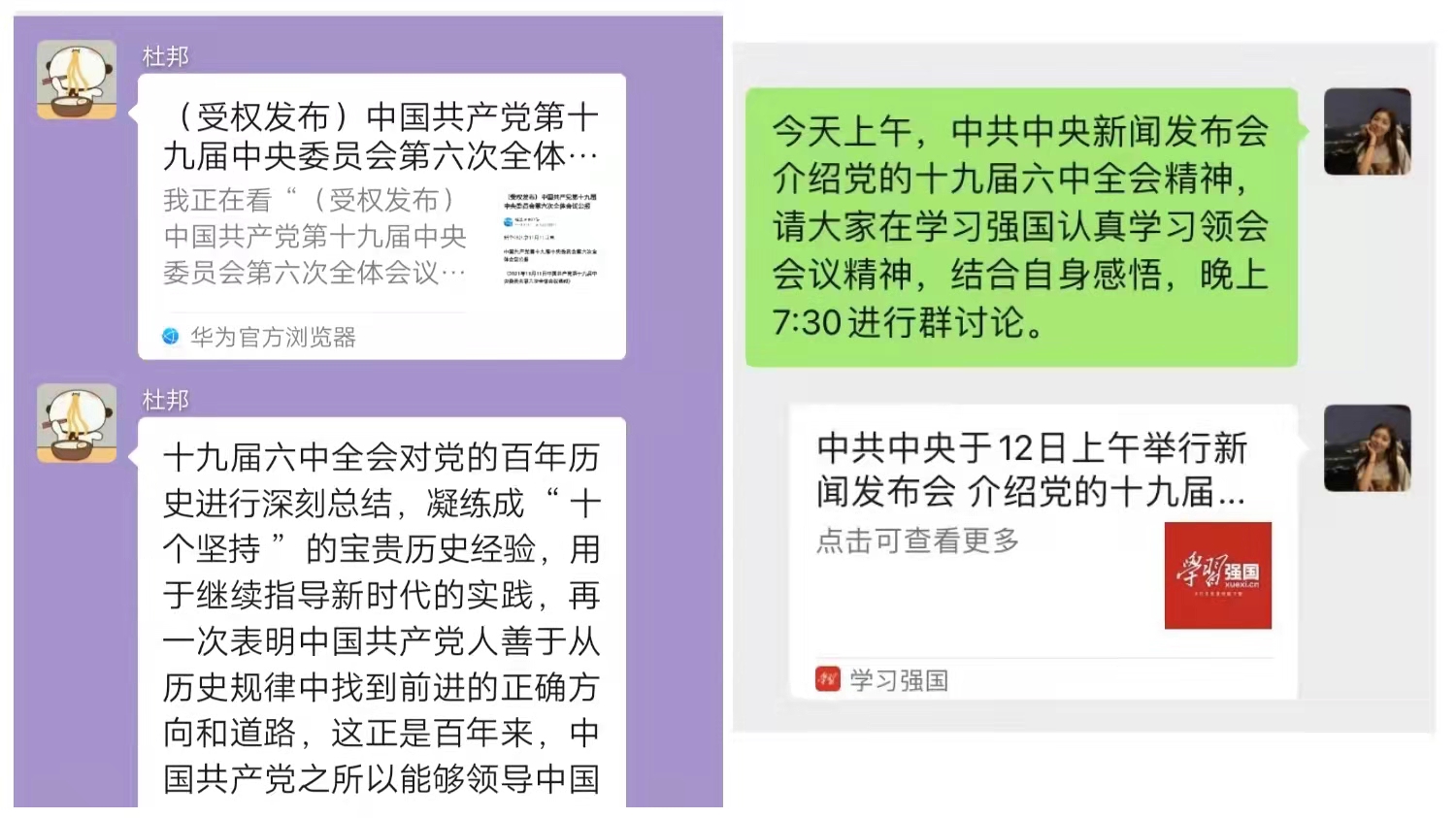 马克思主义学院研究生各个团支部第一时间通过团日活动以及线上线下交流讨论等形式深入学习了十九届六中全会重要精神,同学们深受鼓舞,迅速掀起讨论热潮。