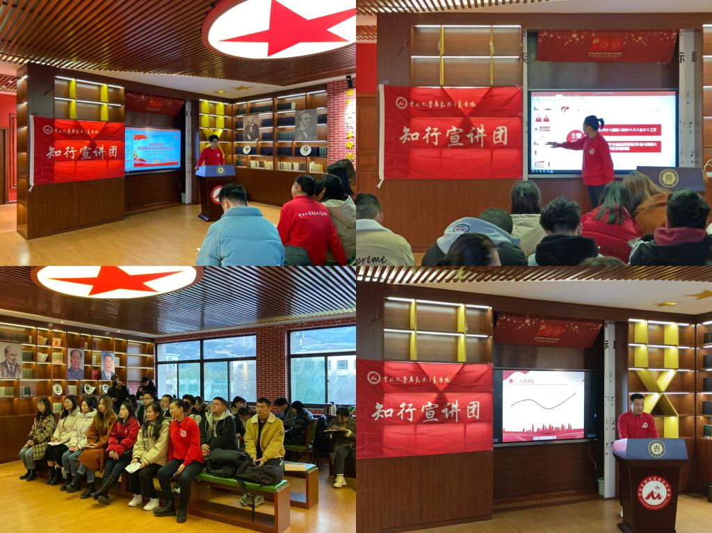 为深入学习贯彻党的十九届六中全会精神,马克思主义学院于11月29日在我校马克思书屋举行了学习党的十九届六中全会精神报告会,本次报告会由“中北大学马克思主义学院知行宣讲团”成员张鑫、任浩杰和王英三位同学做宣讲,我院全体研究生参加了本次报告会。