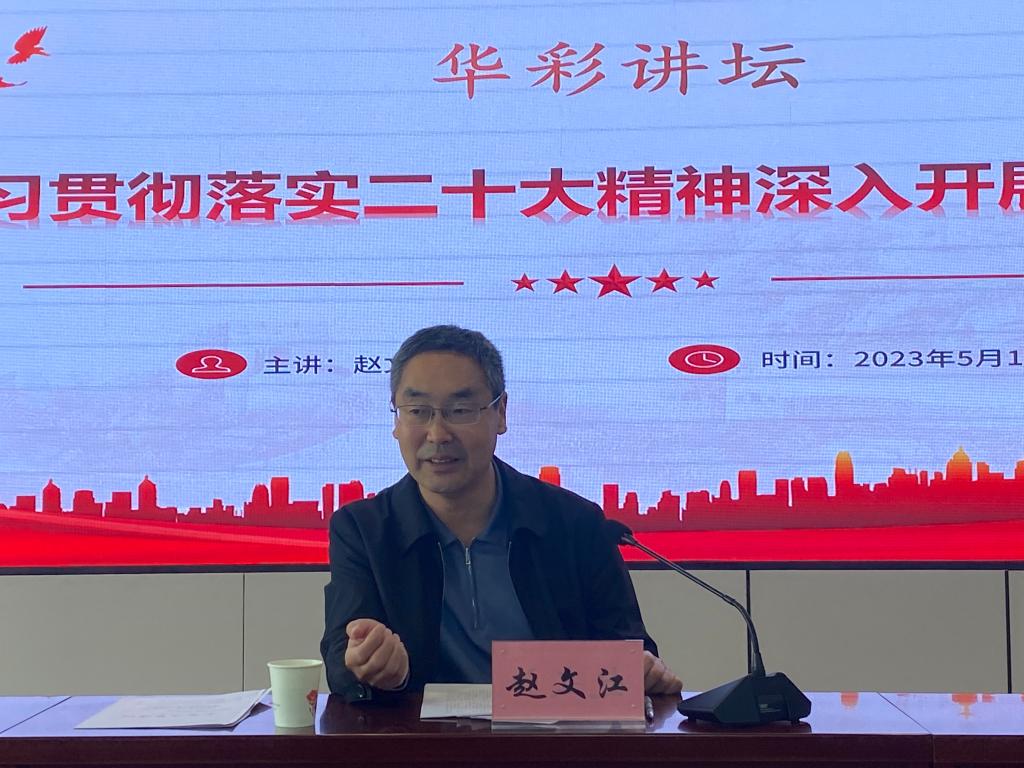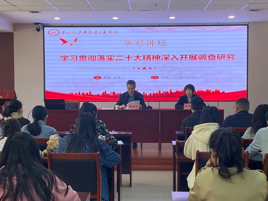为深入学习习近平新时代中国特色社会主义思想,全面贯彻落实党的二十大精神,5月11日,马克思主义学院举办了以“学习贯彻落实二十大精神深入开展调查研究”为主题的研究生华彩讲坛。本次讲坛邀请到了山西省社科院党组成员、副院长,研究员赵文江主讲。讲坛由我院院长赵笑蕾主持,学院党委副书记李庆乐出席,我院全体研究生参加。