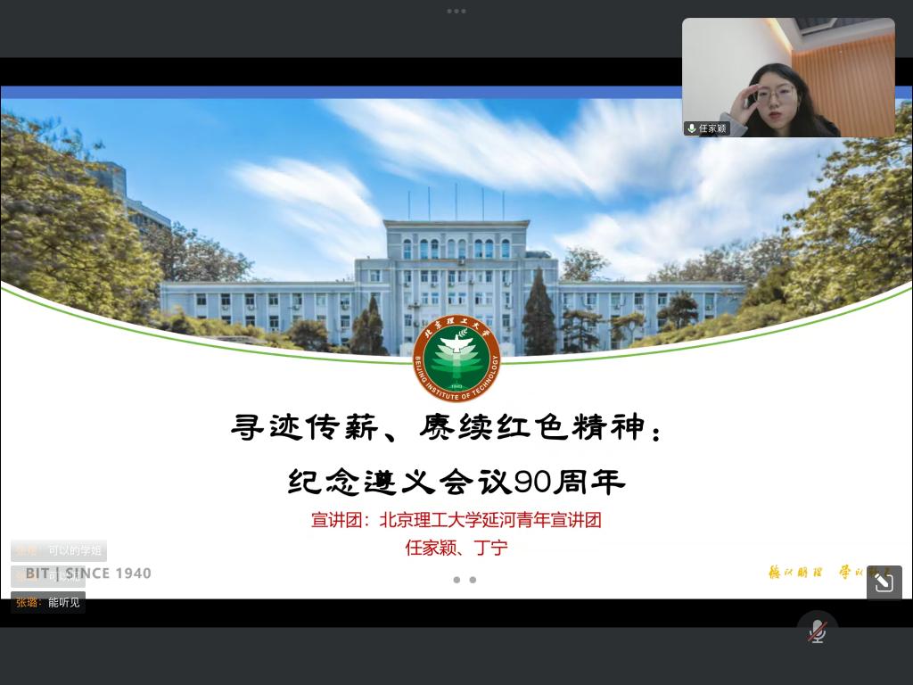为传承红色精神、深化党史教育,厚植青年学子爱国情怀,3月7日下午,我院团学办精心策划组织,邀请北京理工大学延河青年宣讲团开展"寻迹传薪、赓续红色精神:纪念遵义会议90周年"专题宣讲。宣讲团成员任家颖、丁宁作主题报告,我院研一、研二同学参与学习,共同重温红色记忆,汲取奋进力量。