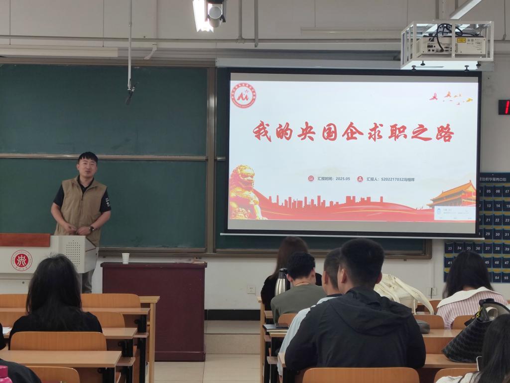 为帮助我院研究生明晰就业方向,传授实用求职经验、提升求职竞争力,我院于5月13日在15101H教室举办主题为“我的央国企求职之路”的研究生明德讲坛,此次讲坛邀请我院2022级研究生冯相珲主讲,全体研究生参加。