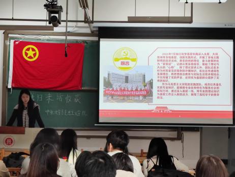 大会在昂扬奋进的《中国共产主义青年团团歌》声中正式拉开帷幕。会上,“知行筑梦”基层实践团的代表李佳玥同学从“前期准备、实践过程、实践成果、经验收获”四个方面系统阐述了团队实践的历程与收获。她指出将专业所学与基层需求深度结合,是实现理论知识转化为服务能力的重要路径。